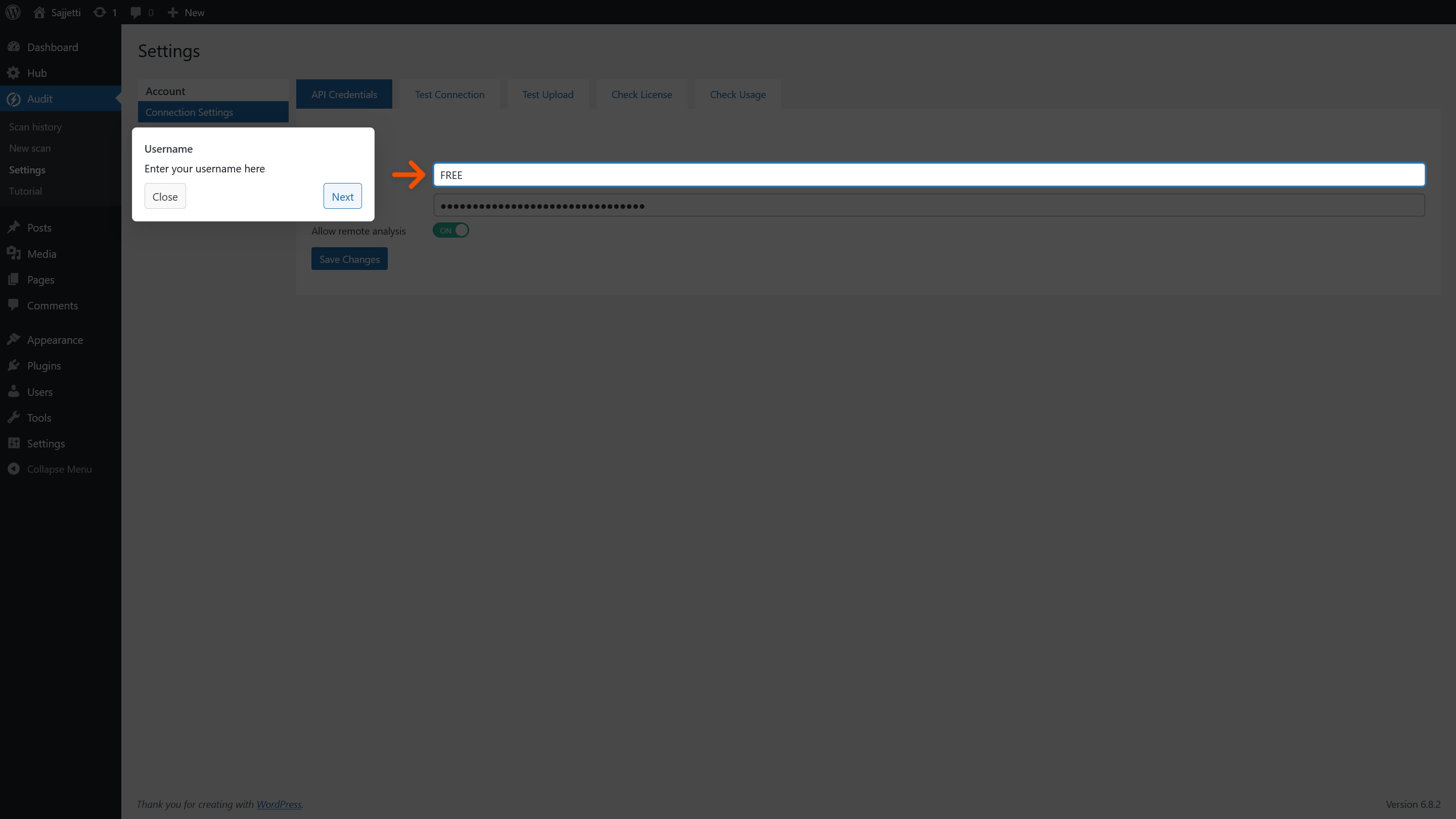 – Your Sajjetti API username (account identifier, not your WordPress username)